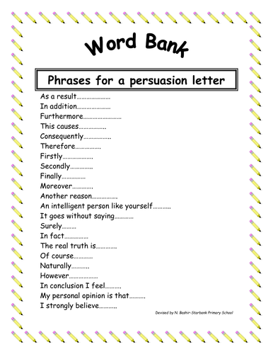 WORD BANK - LETTER OF PERSUASION | Teaching Resources